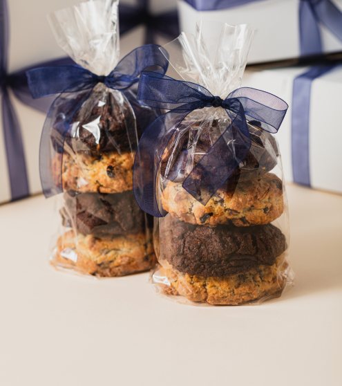 We take great pride in our cookies, baking them by hand every day, with simple ingredients and a whole lotta love — the same way we’ve done since 1995. Our cookies arrive deliciously crispy and soft for immediate enjoyment, or you can warm them in the oven for that iconic gooey center.